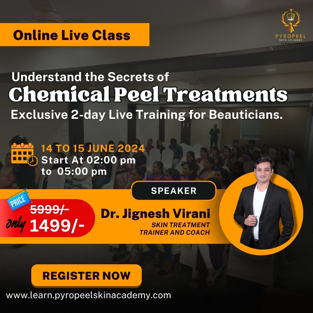 The Chemical Peeling Treatment Training Course is a comprehensive 2-day live class that will cover everything you need to know about chemical peels. From understanding different types of peels to hands-on training on performing the procedure, this course is designed to equip you with the knowledge and skills to offer chemical peeling treatments with confidence.